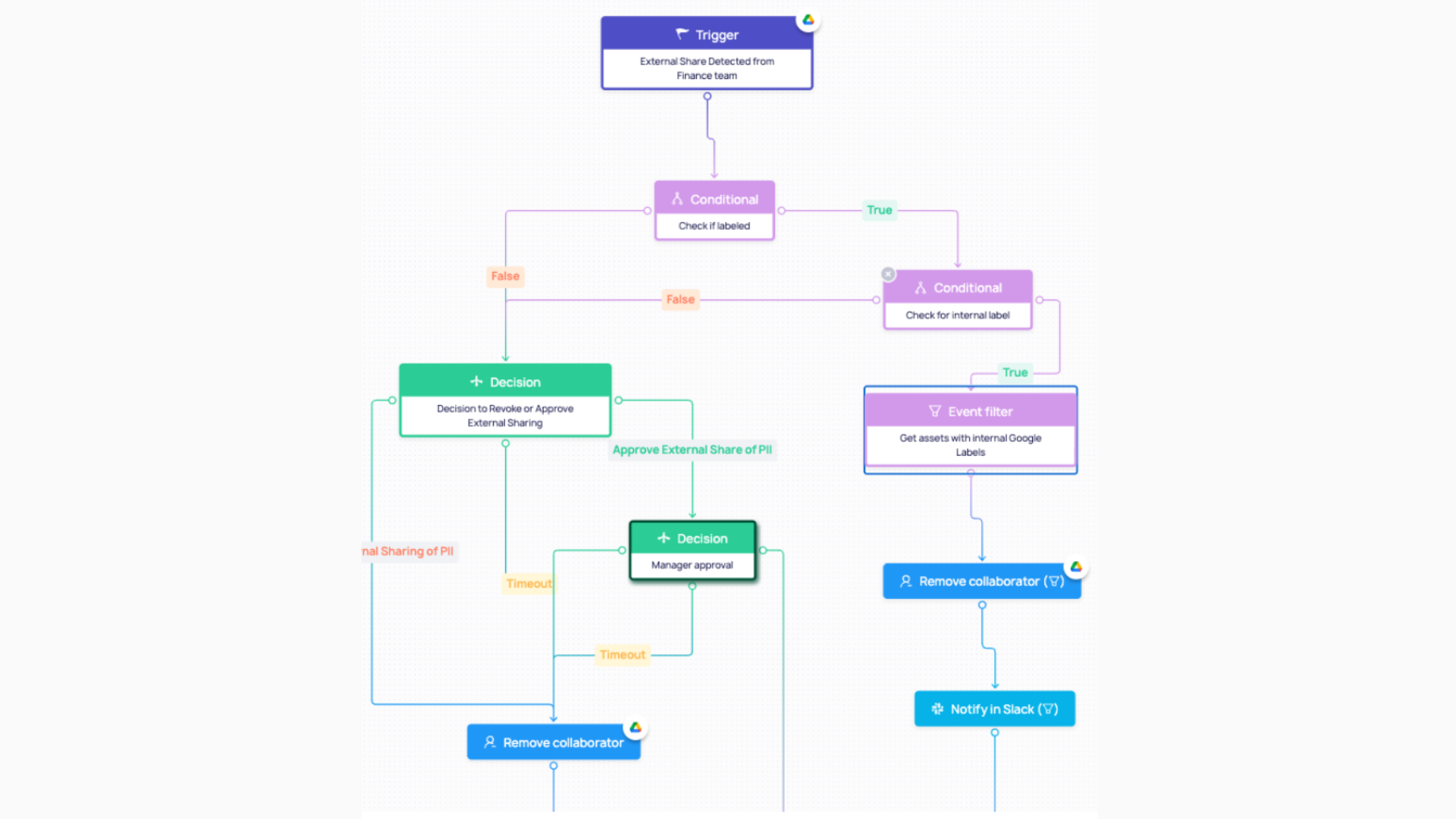 This is where DoControl workflows truly shine. By combining labels, identity data, and real-time activity, organizations can enforce policies that are: